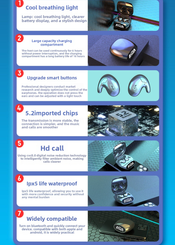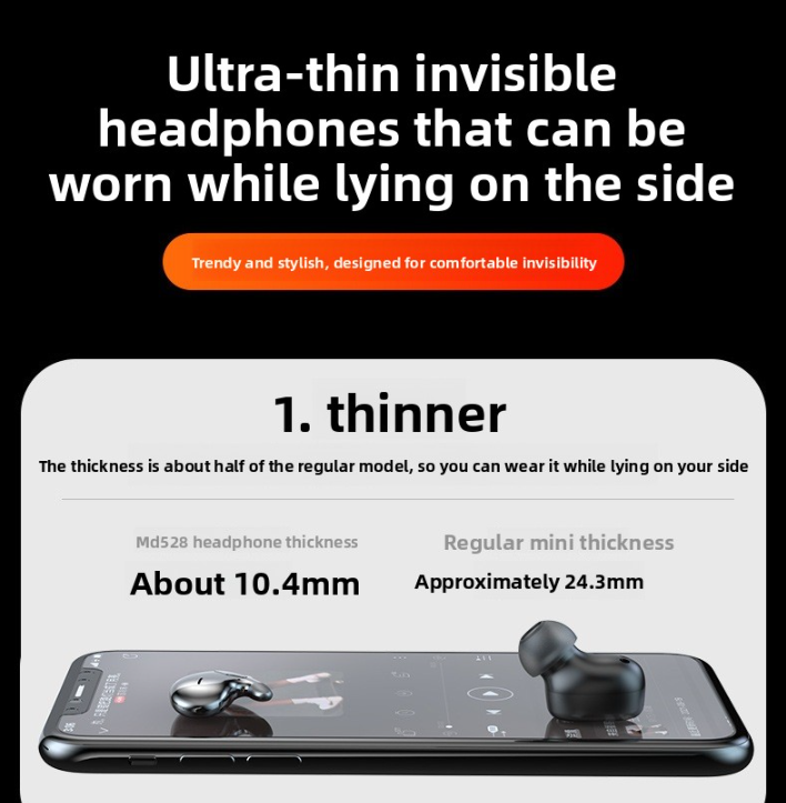 Wireless Bluetooth Earphones: Ultra-thin, ergonomic ear-hanging design for comfortable sleep and daily use.