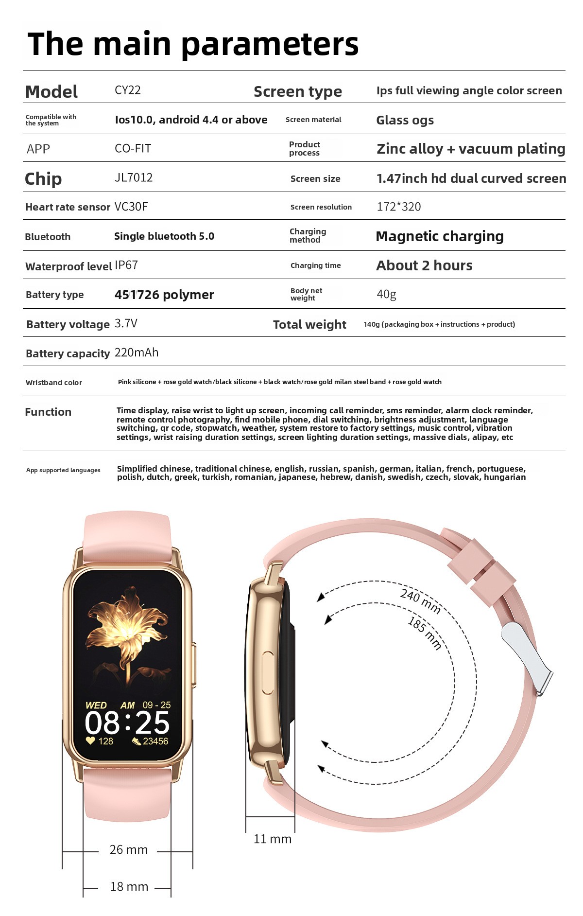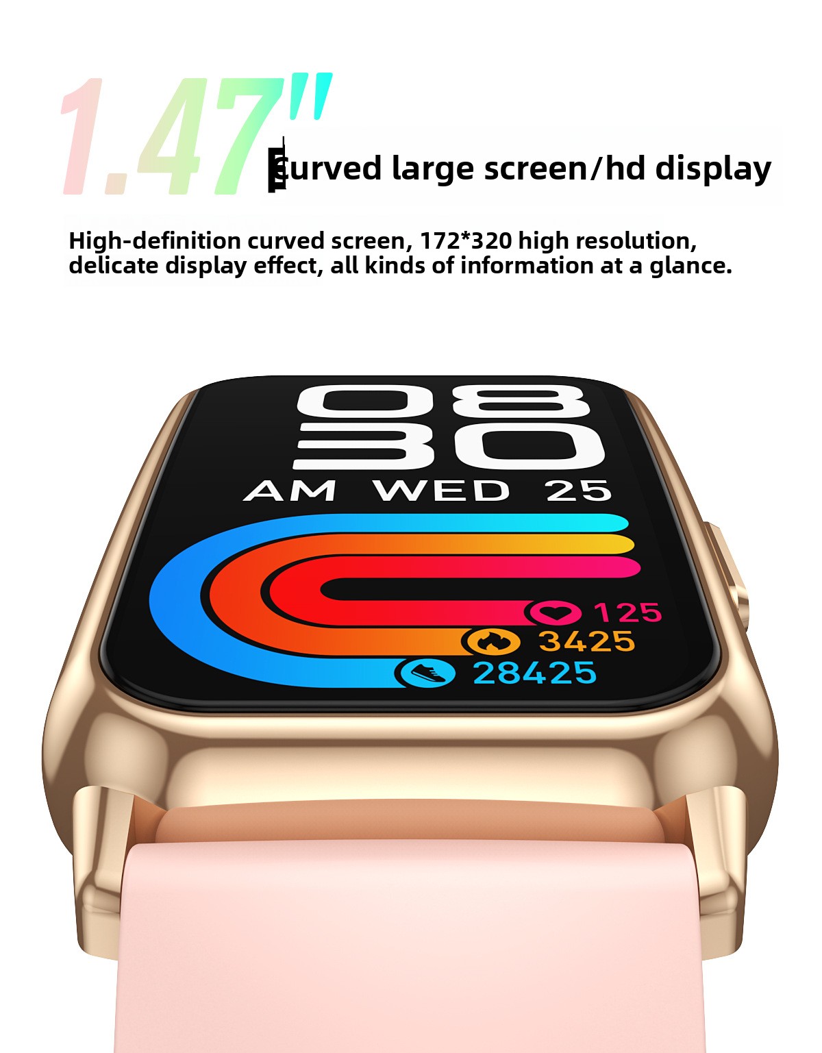 Functions: Step counting, blood pressure measurement, blood oxygen detection, remote selfie, social entertainment