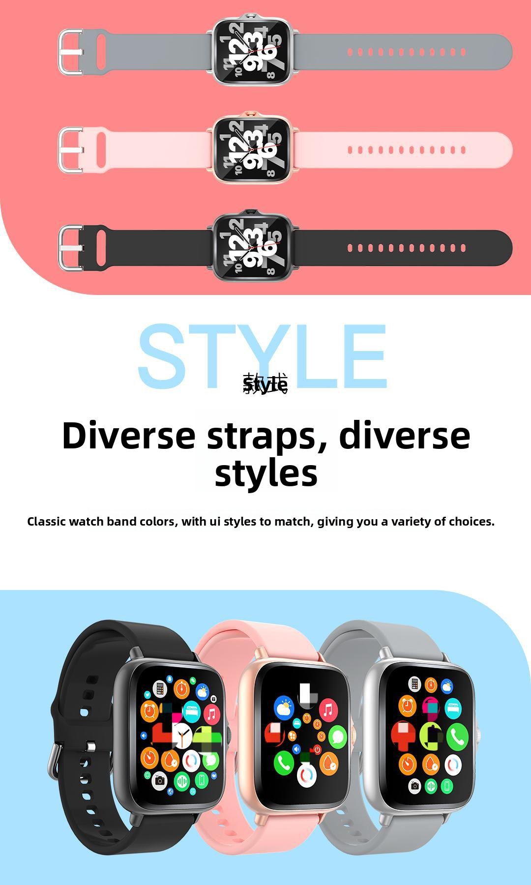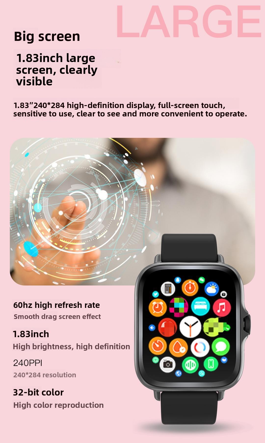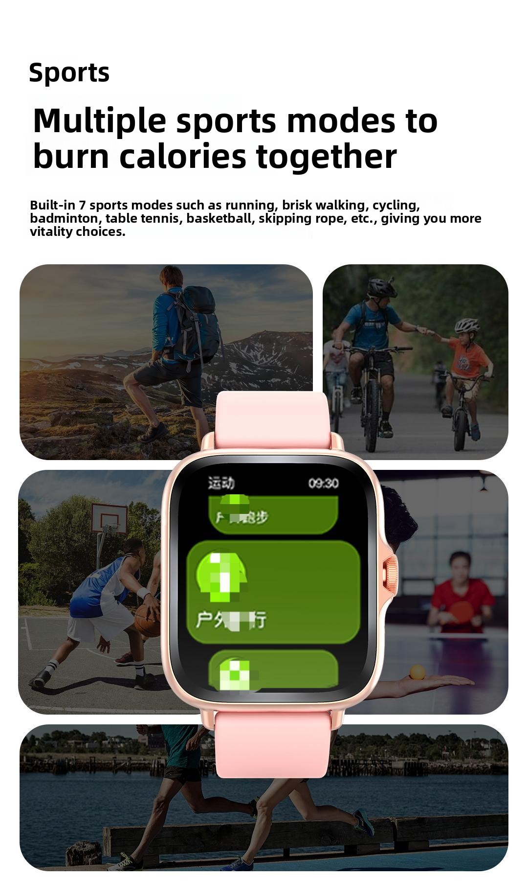 Functions: Step counting, Bluetooth call, smart reminder, remote selfie